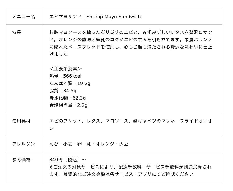 メニューの詳細は「BASE Sand」WEBサイト(https://basefood.co.jp/basesand)をご覧ください。