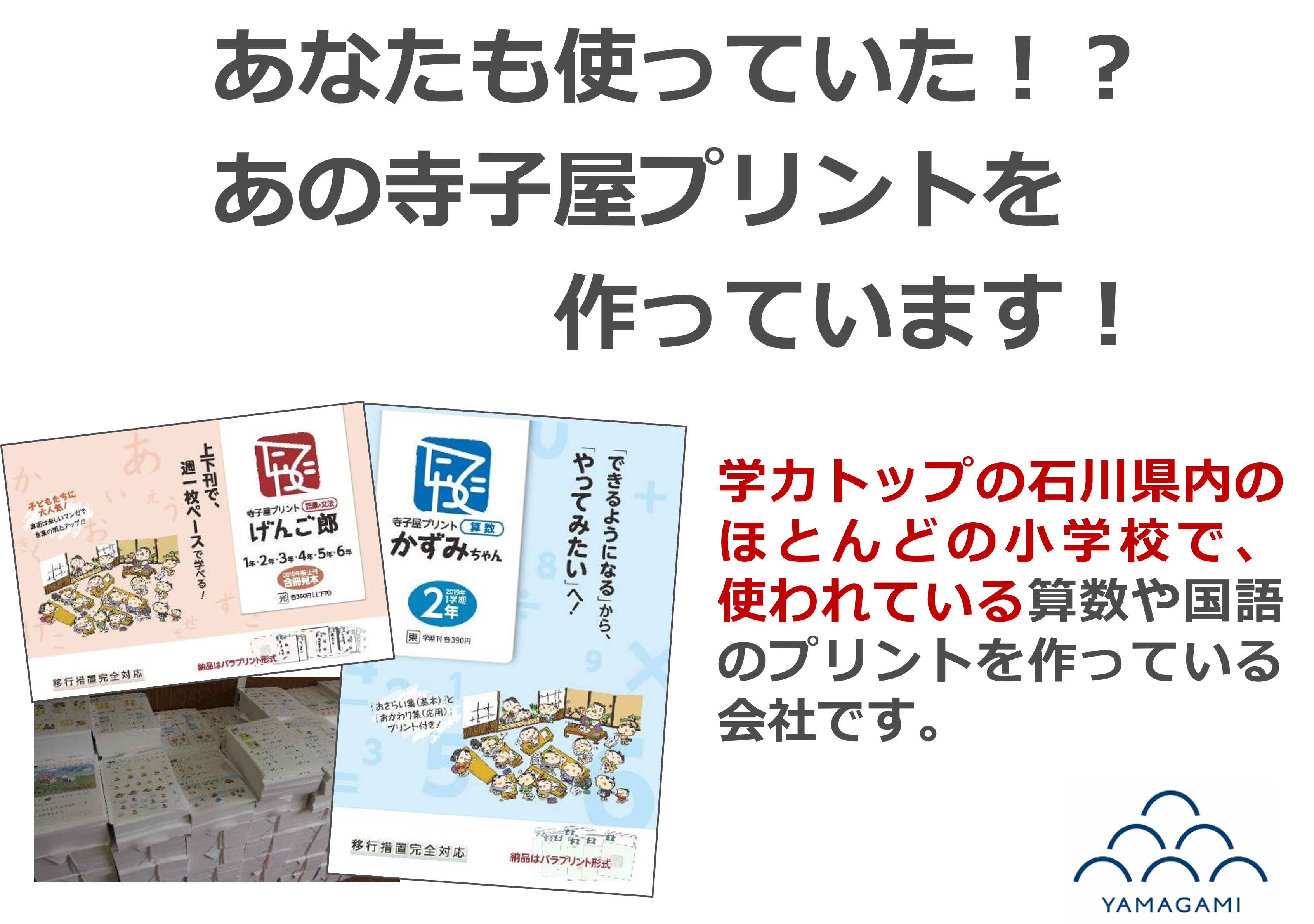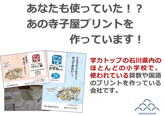 ※「寺子屋プリントかずみちゃん」は、地元・金沢市およびその周辺地域の小学校約100校のうち、約8割の児童が使用しており、神奈川、沖縄をはじめ全国28都府県の小学校でも使われている。