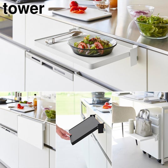 キッチンでは配膳準備や調理小物の仮置きに便利です。