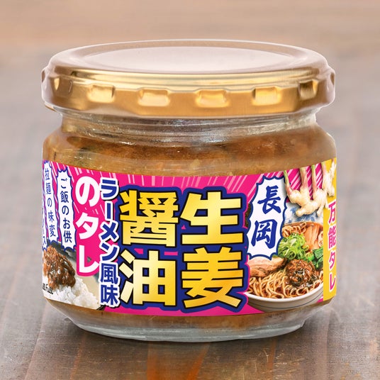 新潟のソウルフード「長岡生姜醤油ラーメン」が万能タレになった!生姜が効いた醤油ベースの万能タレ。チャーシューなどラーメンの具材入りの本格派。くせになる美味しさで白米が無限に消える!ラーメンをぶっかけろ