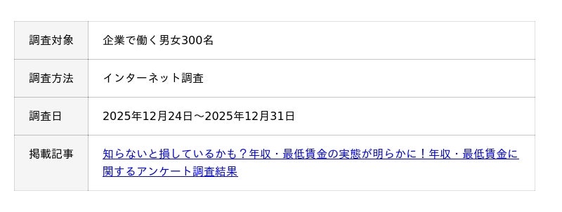 300人が回答!年収と最低賃金に関するアンケート調査【2026年】