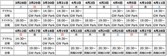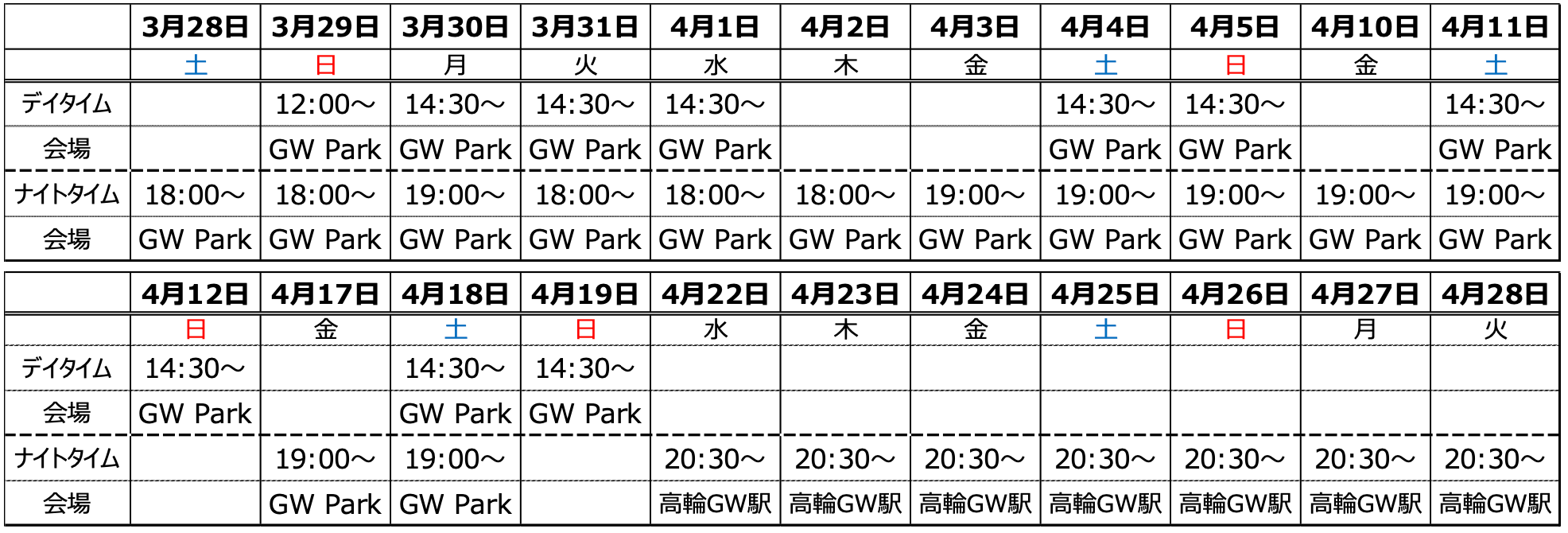※各日開催時間、実施回数、ルートが異なります。また、実施内容が変更になることがございます。