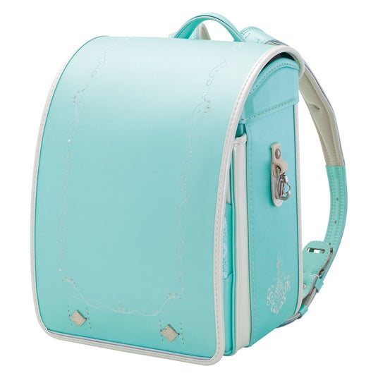 「ミントグリーン」など寒色系のランドセルは爽やかな印象で、近年人気上昇中!ドレスをモチーフにした刺しゅうがエレガント。肩ベルトには「らくふわベルト(R)」を搭載し、やさしい背負い心地を実現。お子様の成長に合わせて下ベルト幅が左右に広がる「ミラくるっロック(R)」を採用。専用のネームプレートを取り付けることができます。(後付けは不可・承り時に限ります)