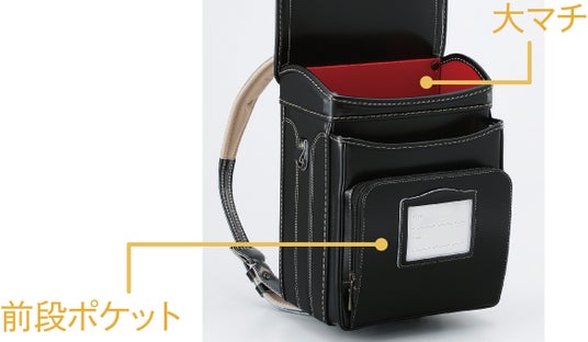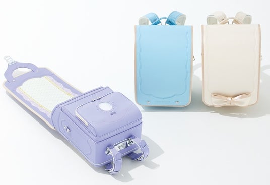 ものづくりの街・愛知県名古屋市で創業57年の歴史を誇るランドセルメーカー<三栄鞄>が手がけるブランド、<らんどせる屋さん>とのコラボレーションランドセル。学校のロッカーに収納する時に便利な「でるたキャッチ」(画像:中央)を採用。ベルト部を従来品より2倍の厚さと幅に増量した「ウルトラカーブベルNEXT」(画像:右)が、お子様の身体にやさしい背負い心地を実現。