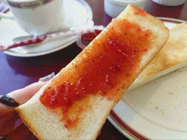 イチゴジャムもついてきました。そうそう、この味! 子どもの頃に食べていたジャムトーストの思い出が蘇ってきます。親に制限されることなく、好きなだけジャムをトーストに乗せてみたかった、あの頃の自分……。もう大人なので存分に塗りたくることができました。