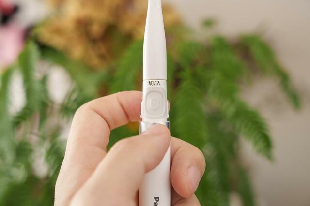 手磨き用の歯ブラシと比べても、少し大きいかな?くらいのサイズ感で、これが本当に電動なのか信じられないくらいです……。