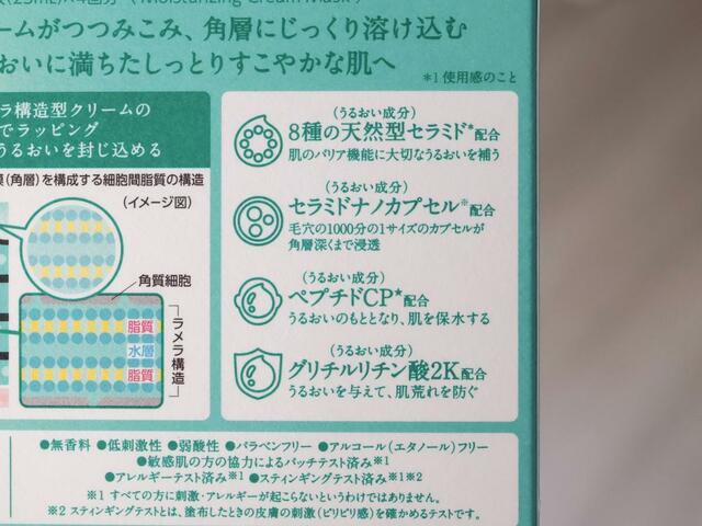 成分は8種のセラミド(うるおい成分)を配合しているほか、セラミドを内包したナノカプセルを採用しているのだとか。