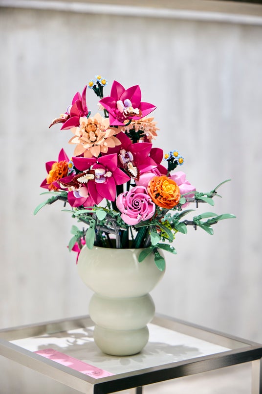 「レゴ(R)ボタニカル ブルームギャラリー」の会場中央には、レゴ(R)ブロックで組み立てられたピンクローズが展示され、その周りをさまざまなレゴ(R)ボタニカル製品からアレンジをして制作した6種類のオリジナルブーケが展示されています。ブーケにあしらわれている花の「花言葉」をもとに、各ブーケには「果てなき歓び」や「羽ばたく夢」といったタイトルとメッセージが添えられています。そして、会場内には、中尾明慶さんと倉科カナさんがプロデュースをしたレゴ(R)ボタニカル製品を組み合わせたアレンジメントブーケもお披露目されました。お二人の今の気持ちを映し出す“自分らしさ”を表現したオリジナルアレンジを通して、レゴ(R)ボタニカル製品の新たな魅力を発信します。また、会場では、レゴ(R)ボタニカル製品の簡易的な組み立て体験も可能で、来場したお客さまが組み立てた 1 輪の草花は会場内に飾り、春の花壇を完成させます。この体験を中尾明慶さんと倉科カナさんもひと足先に体験し、楽しんでいる様子が見られました。