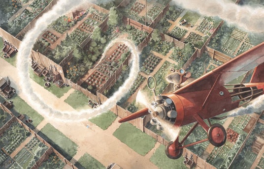 野菜畑の地下で暮らす野ネズミの女性発明家は、偶然見た切手から外の世界に憧れ、仲間の反対を押し切って自作の飛行機で旅立つ。