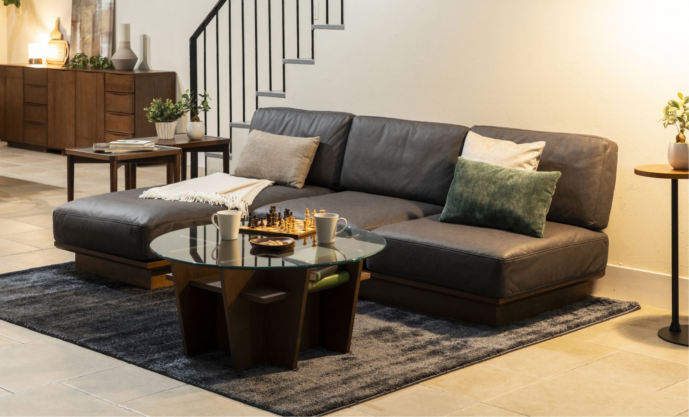 脚のないロータイプだから、空間に圧迫感を与えず、重厚感をもたらす。