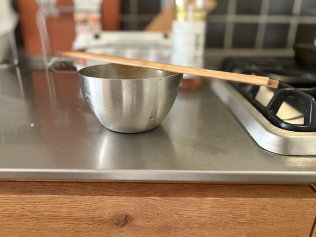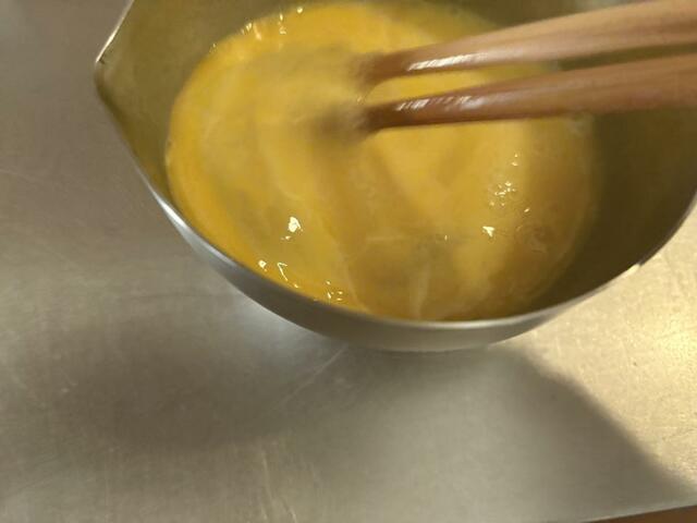 下ごしらえボウルは、「持つ」「注ぐ」「置く」を何度か繰り返す卵焼き作りのためのボウルと言ってもいいくらい。