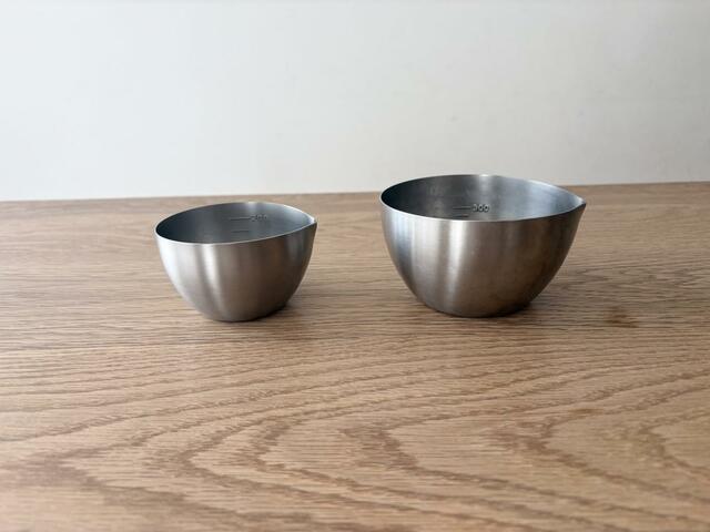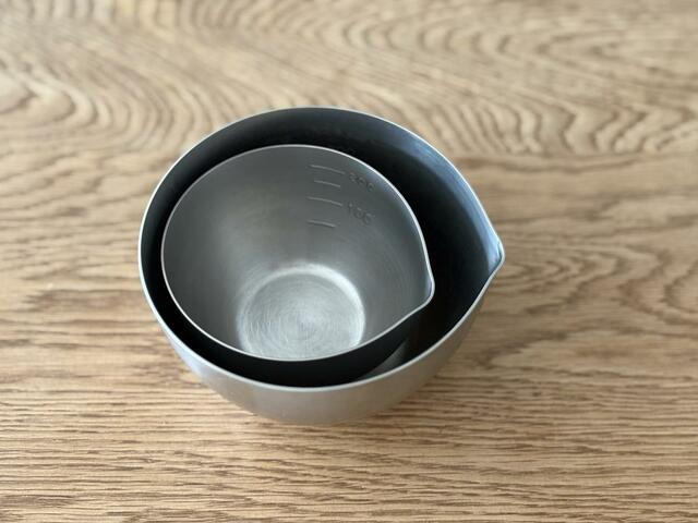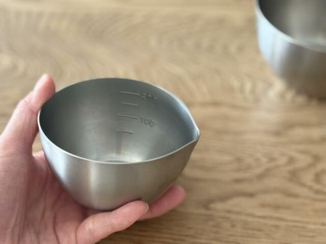 下ごしらえボウル9は、200mlまで測ることができ、小ぶりなサイズ感含めて計量カップ代わりに持っていても良さそう。