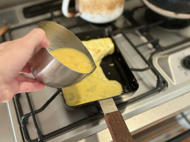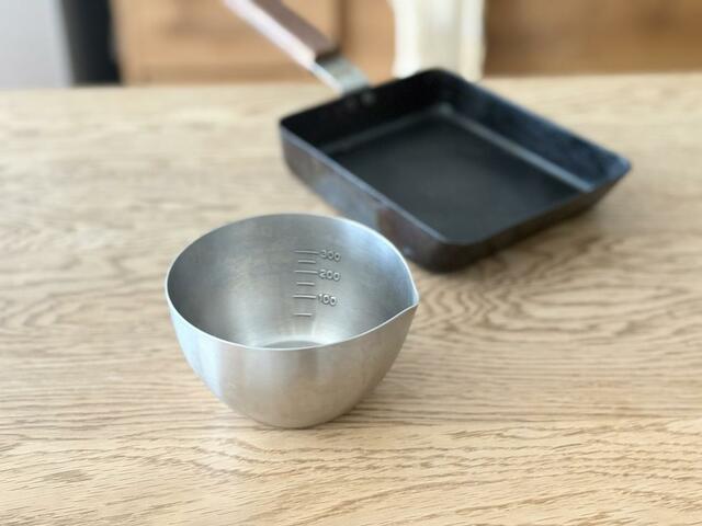 注ぎ口付きなので、卵液を適量注ぐことができます。