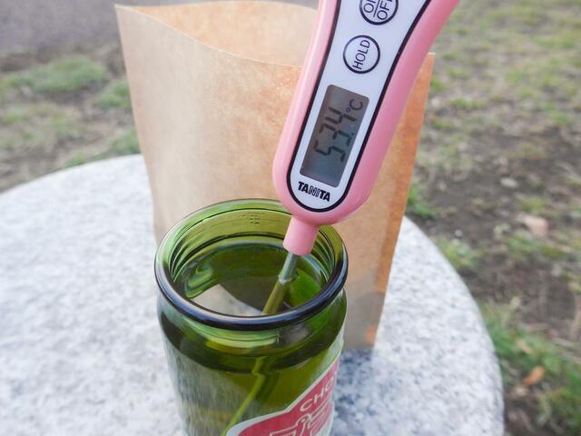 10分ほど温めてから温度を測ってみると、約53度。