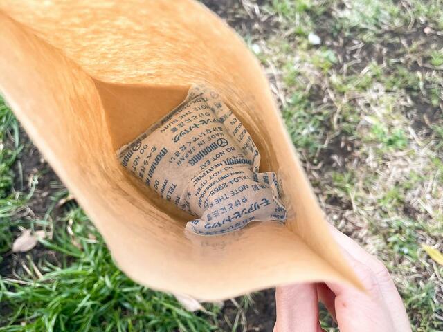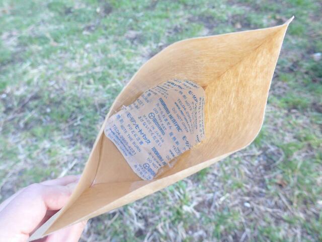 まずは紙袋の底に発熱剤をセットします。