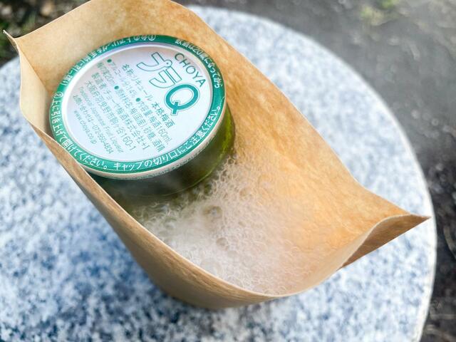 「缶以外でも温められるのかな?」と思い、今度は飲みきりサイズの梅酒でも試してみました。