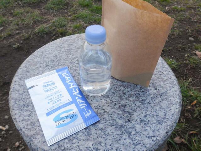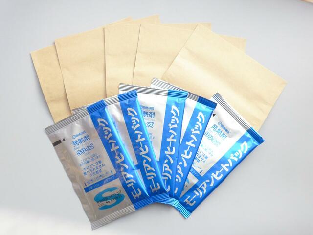 発熱剤と紙袋がセットになっていて、水を使って化学反応で熱を発生させるアイテムです。