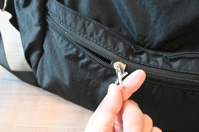 前面から見たときに、ポケットの存在がわからないようになっている隠しポケットなので、大切なアイテムはこちらに入れておくとよさそうです。