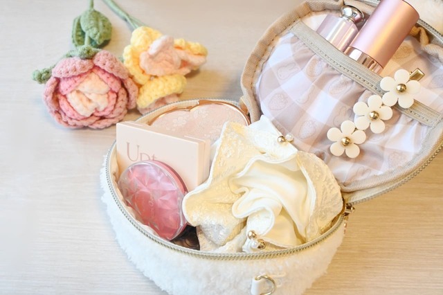 コスメを入れればメイクポーチに。鍵やハンカチを入れたら、ちょっとしたお出かけにも使えます。