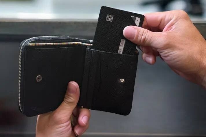 厚さわずか3mm・約18gという薄型軽量設計。サイズは横6.5cm×縦9.5cmで、一般的なカードサイズにぴたりと合うコンパクトさ。長財布のカードポケットに差し込んでも膨らまず、ミニ財布やジャケットの胸ポケットにもスッと収まります。