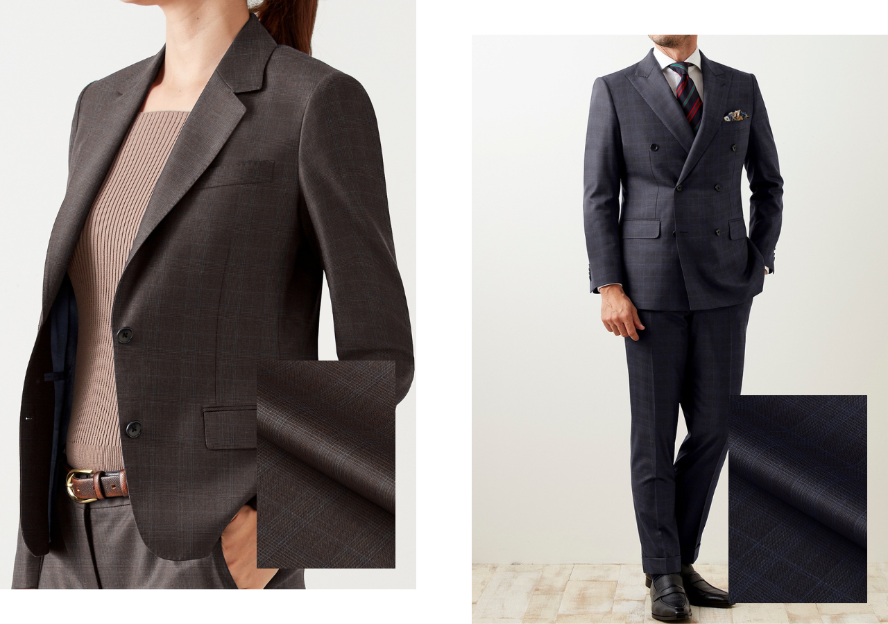 【Loro Piana - ロロ・ピアーナ】の生地は、最高級ブランドならではの美しい艶感と柔らかな風合いで、ノーブルな雰囲気を醸し出してくれます。26年春モノ新作では、ネイビー、グレー、ブラックなどのビジネスで重宝するベーシックな色合いや、さり気ない個性を演出できるチェック柄など多数ご用意しました。イベントでの勝負スーツとしてもおすすめです。ぜひ一度、店頭で新作生地をお楽しみください。
