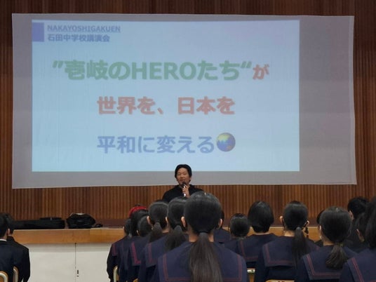 対馬東部中が世界で作った「平和」を講演