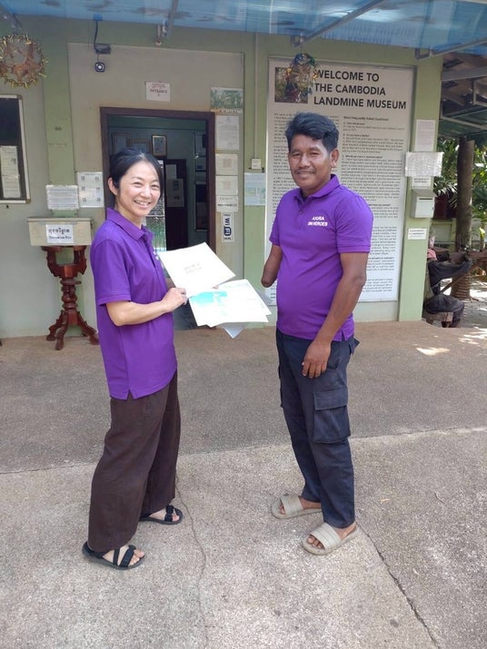 カンボジアの地雷博物館に寄贈されたクメール語版「はじめてのナガサキ」