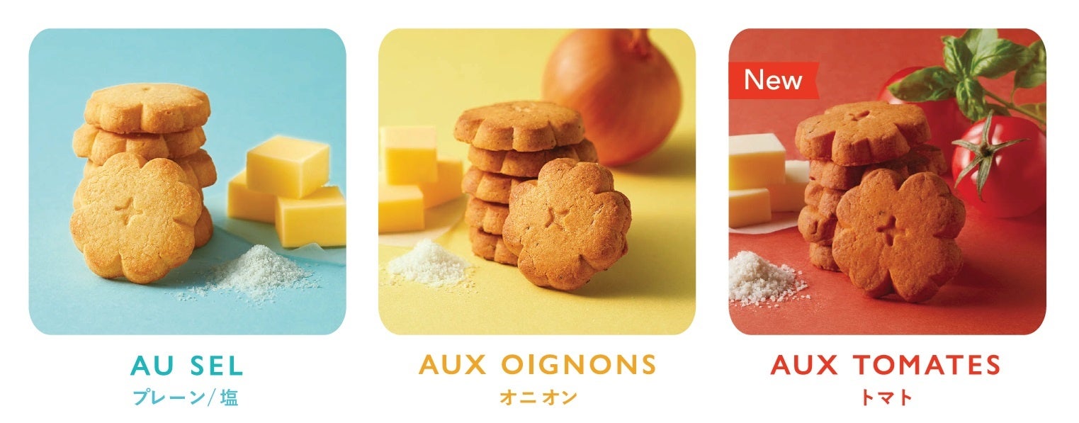 〈B.sable(ベー・サブレ)〉3種…左から、[プレーン/塩]、[オニオン]、[トマト]