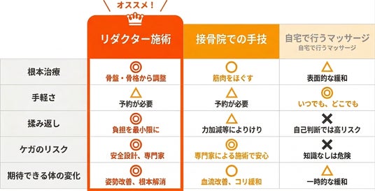 株式会社リーフでは、そうした手技の良さも活かしながら、特別診療(リダクター施術)を軸に「その場しのぎで終わらせない」施術設計を行っています。