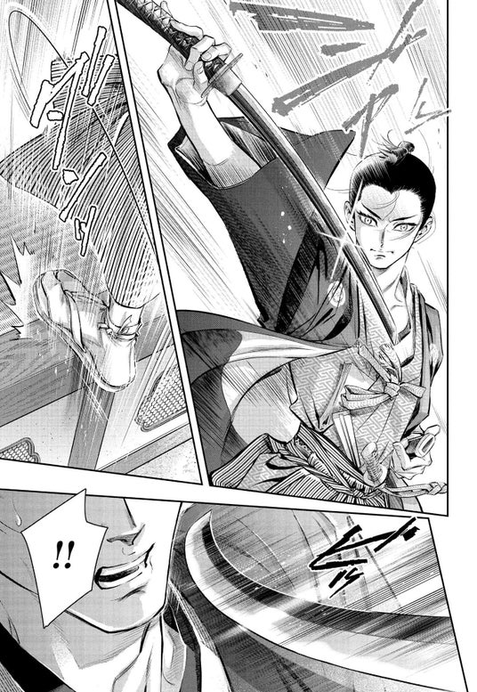 青年誌でずっと中央から外れたアウトサイダーな侍たちを描いてきましたが、BLでもやはり高瀬はたかせ…でした(笑)。切腹、介錯、斬首、そして据え物様(ためし)…武士のダークサイドとも言える部分でよくBLで許可して貰えたなといまだに思いますが、男と男の愛憎と刀剣とその闇…好きなものを描きました。書院に差す光、障子に映る樹影、黒羽織の武士…フェチのままに好きな絵をたくさん入れて。