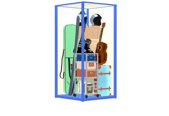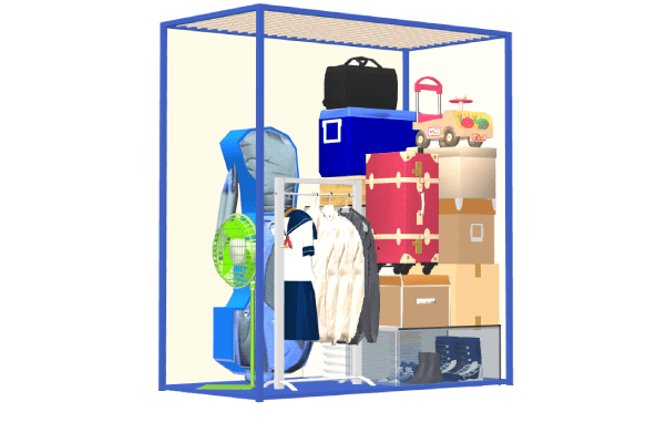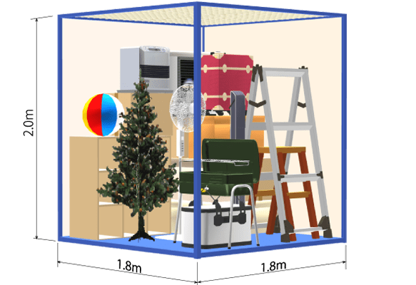 一般的なサイズの段ボールで、約18~36個分の大きさとなり、クローゼットの代わりに使えるくらいの広さです。オフシーズンの衣服・布団・家電や、スーツケース等の収納ができます。