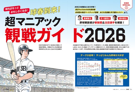 WBCでの大谷翔平選手の活躍や韓国、オーストラリアとの激戦など、日本を沸かせる侍ジャパン。その興奮冷めやらぬ今、3月16日発売の雑誌『DIME』5月号では、「超マニアック野球観戦ガイド」を大特集! 野球解説者に聞く観戦のポイントやYouTubeやデータを活用したディープな観戦術、各球団のマーケティング戦略やあだち充作品と甲子園との絆など、知れば観戦が10倍楽しくなる舞台裏を徹底取材しました。
