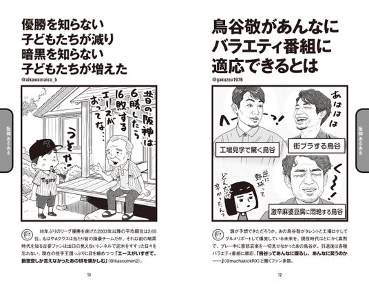 X(旧ツイッター)の人気アカウント「@89_ogiri」(野球大喜利)を主宰する漫画家・カネシゲタカシ氏による「プロ野球関連の“あるある”本」です。