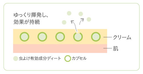 ●独自技術<持続型カプセル処方>採用により、高い虫よけ効果と肌へのやさしさを両立。