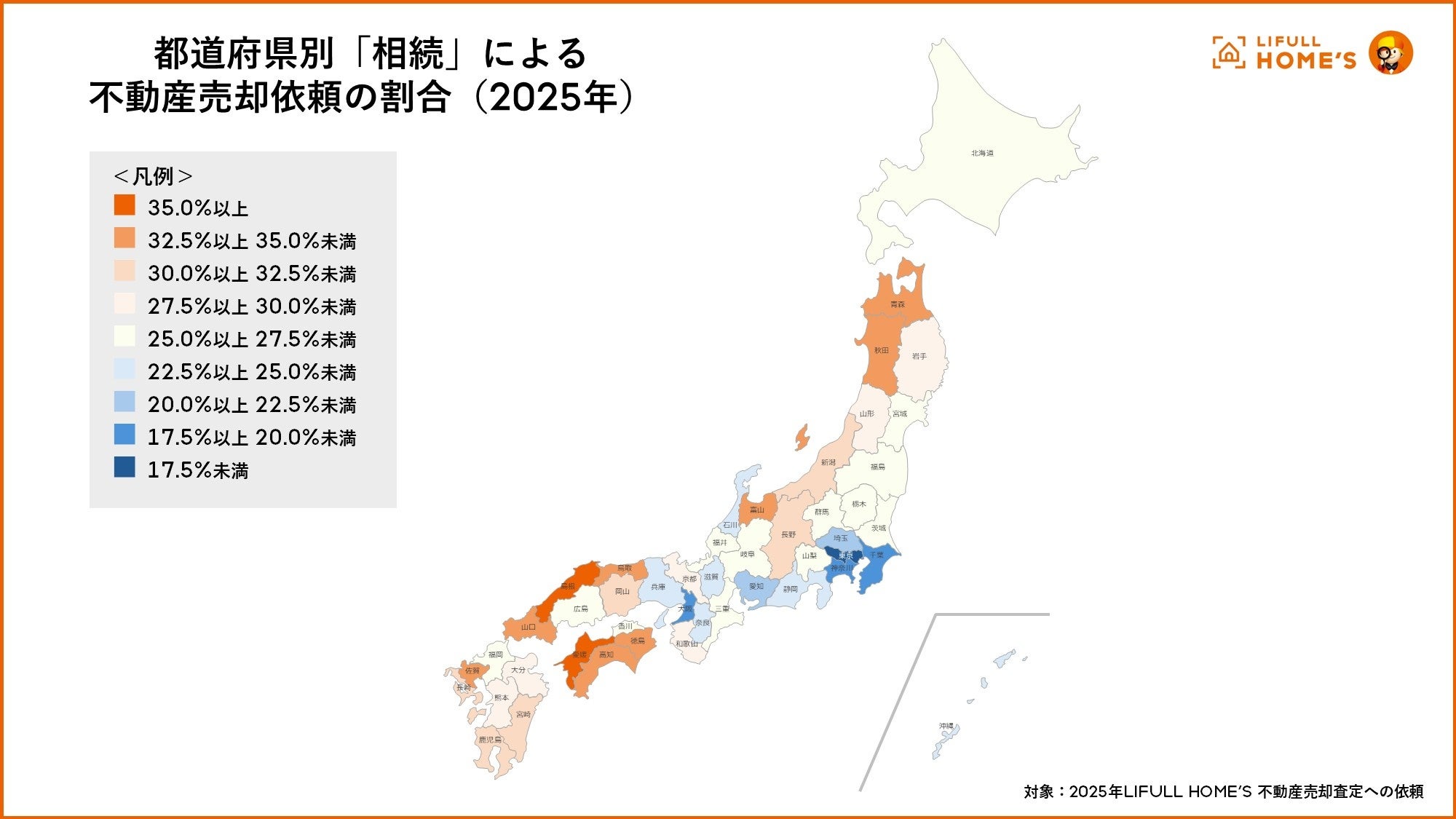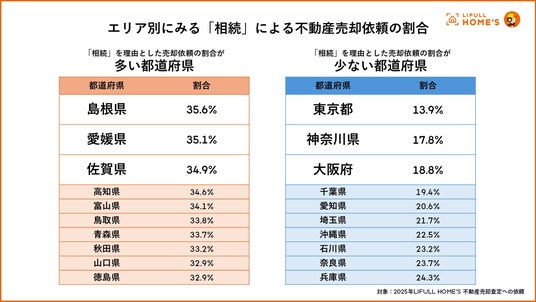 事業を通して社会課題解決に取り組む、株式会社LIFULL(本社:東京都千代田区、代表取締役社長:伊東祐司、東証プライム:2120)は、2025年1月から12月までのLIFULL HOME'Sにおける「相続」を理由とした不動産売却の依頼データを基に、都道府県別の傾向を調査いたしました。