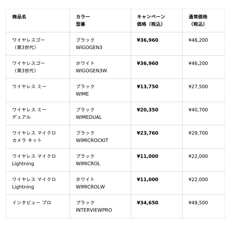 ※本キャンペーンの対象製品は、ワイヤレスマイクロ ライトニング」です。「ワイヤレスマイクロ USB-C」は対象外となりますので、ご注意ください。