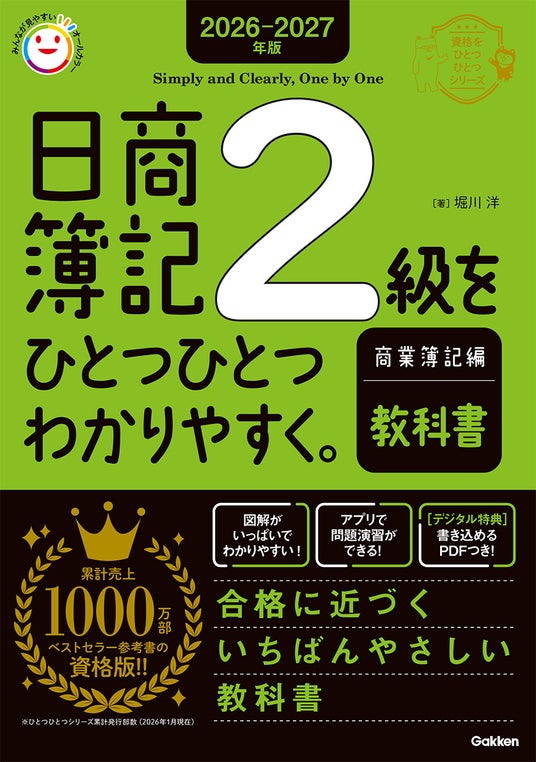 株式会社 学研ホールディングス(東京・品川/代表取締役社長:宮原博昭)のグループ会社、株式会社 Gakken(東京・品川/代表取締役社長:南條達也)は、2026年2月26日(木)に『日商簿記をひとつひとつわかりやすく。』シリーズの2026-2027年版として、『3級(教科書/問題集)』『2級商業(教科書/問題集)』『2級工業(教科書/問題集)』の計6冊を発売いたしました。