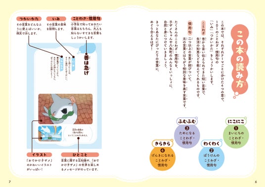 それぞれテーマごとに分けた4つの章で、101のことわざ・慣用句の「いみ」「つかいかた」を紹介。