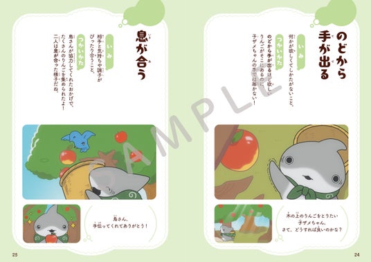 子ザメちゃんのおでかけの様子や心あたたまるストーリーに癒されながら、誰でも楽しく学べます。