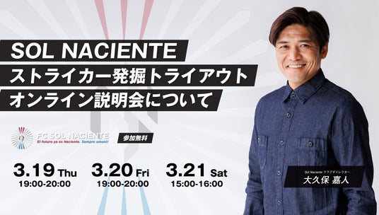 FC Sol Nacienteでは、「ストライカー発掘トライアウト」について詳しくご説明するオンライン説明会を開催いたします。