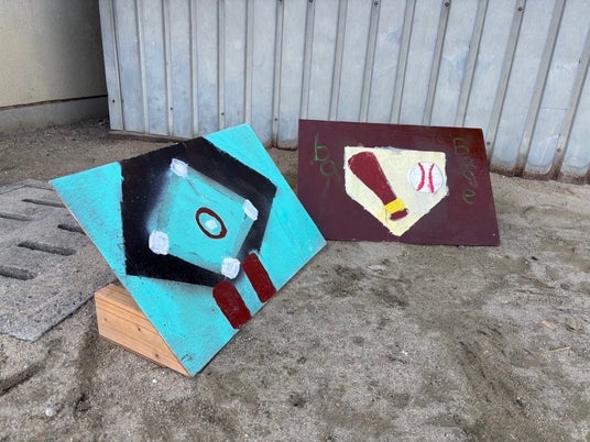 本教材は、経験や技能の差に左右されやすいベースボール型学習において、児童の「動くボールを打ってみたい」という願いを出発点に、誰もが参加できる学びのデザインを目指して開発した。プレートに向かってボールを転がすと、予測可能な高さに跳ね上がる仕組みにより、打撃のタイミングが視覚的・感覚的に捉えやすく、運動に不安のある児童や初めてベースボール型学習に取り組む児童でも成功体験が得られた。さらに、児童が自ら投打のタイミングを「はい → ころ~ん → どっ → かーん!」の4局面に言語化することで、動作の見通しが持てるようになり、判断と動きが結びついた。本教材の目的は、単にベースボール型を「できるようにする」ことではなく、参加の仕方がひとつではない体育の学習環境をつくることにある。打つ・投げるだけでなく、作戦立案・助言・分析・応援といった多様な関わり方を認めることで、全ての児童が学びに主体的に関わることができる協働的かつインクルーシブな体育学習の実現を目指す。