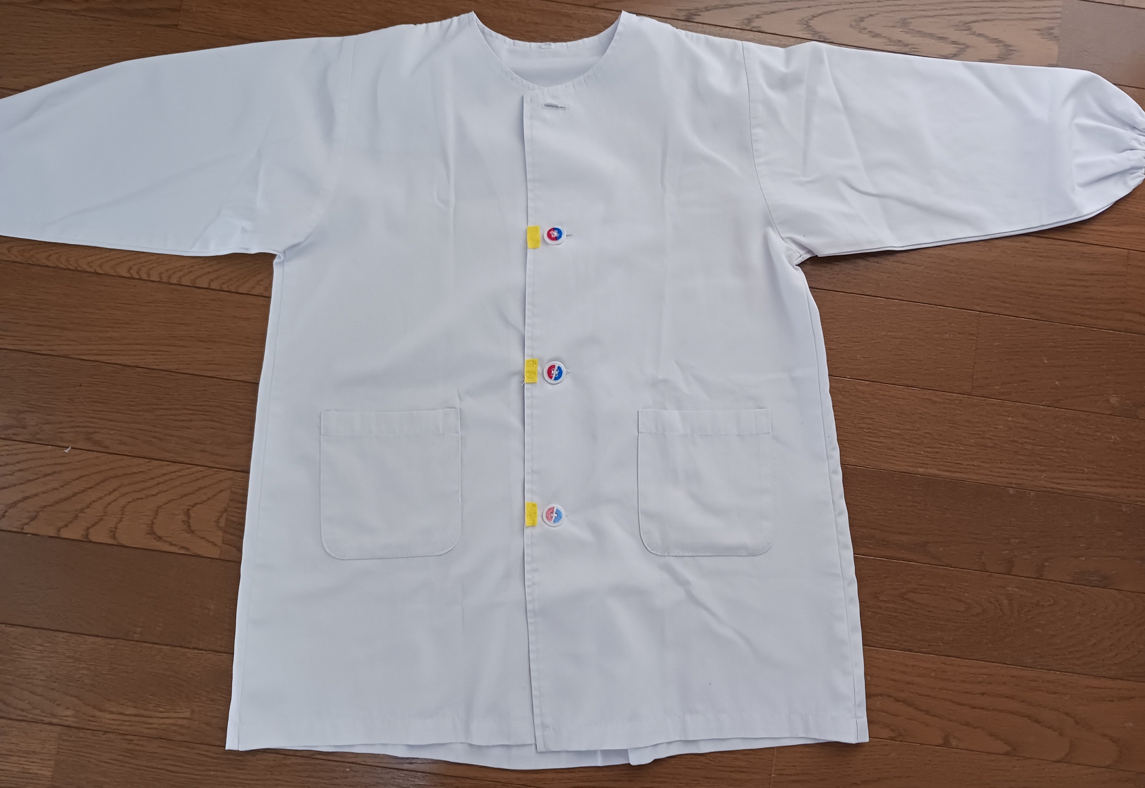 知的障害教育部門の高等部の家庭科で裁縫の授業を担当した時、今までボタンつけをしたことがない生徒が多数いました。裁縫の経験も少なく、針と糸を使って細かい動きが難しい段階でした。将来、自立して生活を送るため、ボタンつけや、糸が抜けない縫い方を身につけさせたいと思ったことから、生徒が扱いやすく、手順を覚えるためには、大型の模擬ボタンつけの教材を考える必要があると思い、作成しました。