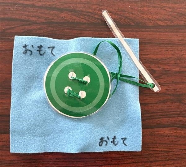 ボタンの付け外しを練習するための教材。ボタンを練習するというよりボタンの付け外しの過程を理解することに重きを置いたもの。