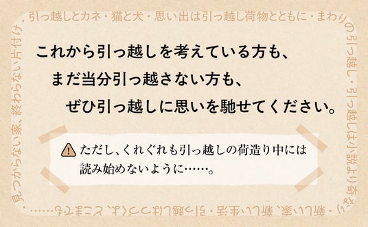 ただし、くれぐれも、引っ越しの荷造り中には読み始めないように……。