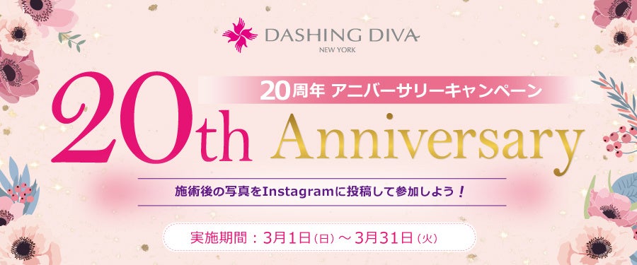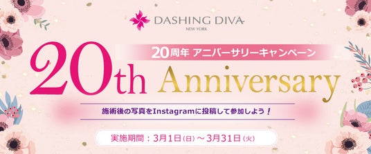 ネイルサロンを運営するダッシングディバインターナショナル株式会社(本社:東京都新宿区、代表取締役:田口 謙一、以下「ダッシングディバ」)は、2026年3月31日(火)まで「20周年アニバーサリーキャンペーン」を展開中です。20周年の感謝を込め、サロン体験をSNSで共有し「指先からハッピーを広げる」参加型イベントを通じて、お客様と共に新たなネイル文化を盛り上げてまいります。