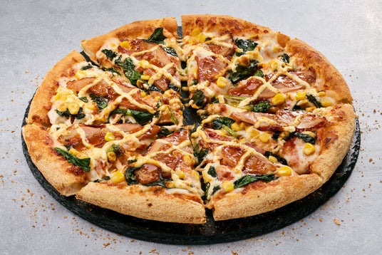 <炭火焼チキテリ>長年愛され続ける人気定番「炭火焼チキテリ」は、日本人の味覚に寄り添う甘辛いテリヤキチキンが主役。本みりんと数種類の糖類で仕立てたコク深いタレが、香ばしく焼き上げたチキンにしっかりと絡みます。フレッシュなほうれん草の彩りとドミノオリジナルのマヨソースが全体をまろやかにまとめ、最後のひと口まで安定した美味しさを実現させた一枚です。