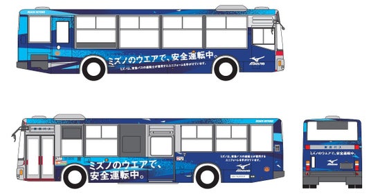 日本に2台限定のミズノワーキングのデザインによるラッピングバス