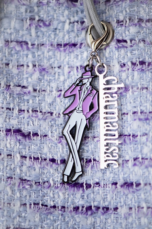 パープルカラーのバッグにつく男役型スペシャルチャーム (C)宝塚歌劇 (C)宝塚クリエイティブアーツ