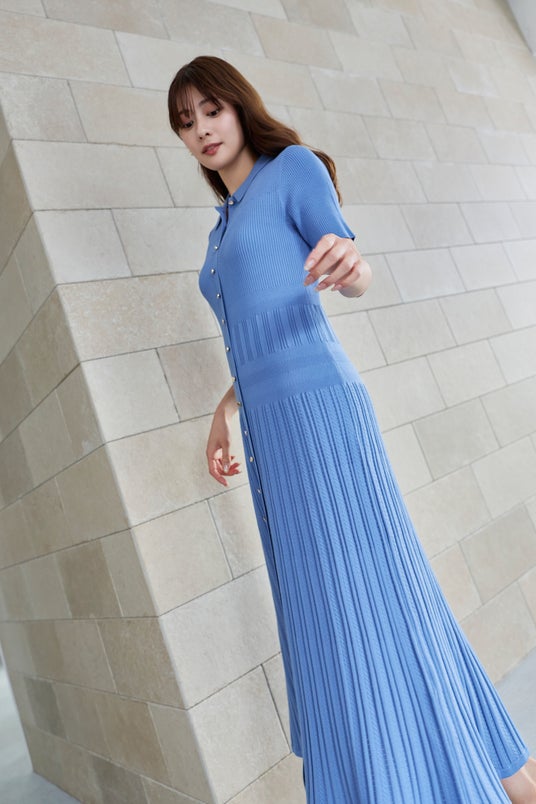 軽やかにスタイルアップが叶う、大人のためのポロニットワンピース。