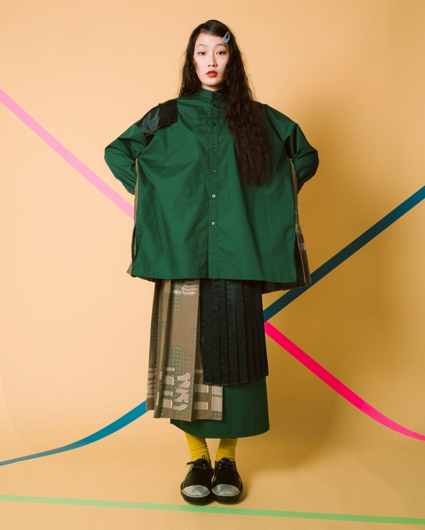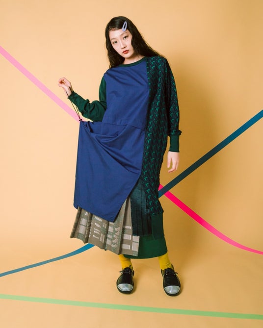正解を決めない配置、完成しきらない構造が、纏うたびに新しいバランスを探し続ける。」(テキスタイルデザイナー梶原加奈子氏)